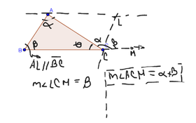 Medida de un `angulo exterior es igual a la suma de las medidas de dos `angulo del triangulo no adyacentes a el.