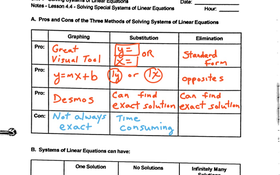 Alg 1 Notes Lesson 4.4 Solving Special Systems of Linear Equations