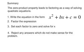 10-4 Factoring to Solve Quadratic Equations