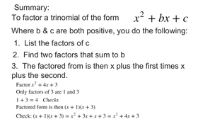 9-5D Factoring Trinomials summary