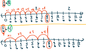 Multiplying fractions and whole numbers using Number Lines