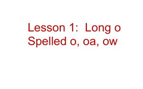 Lesson 1: Long O: Oa, Ow, O