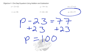 6th Grade - Objective 4 - One Step Equations Using Addition And Subtraction