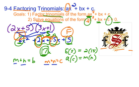 9-4 Factoring Trinomials: ax2 + bx + c